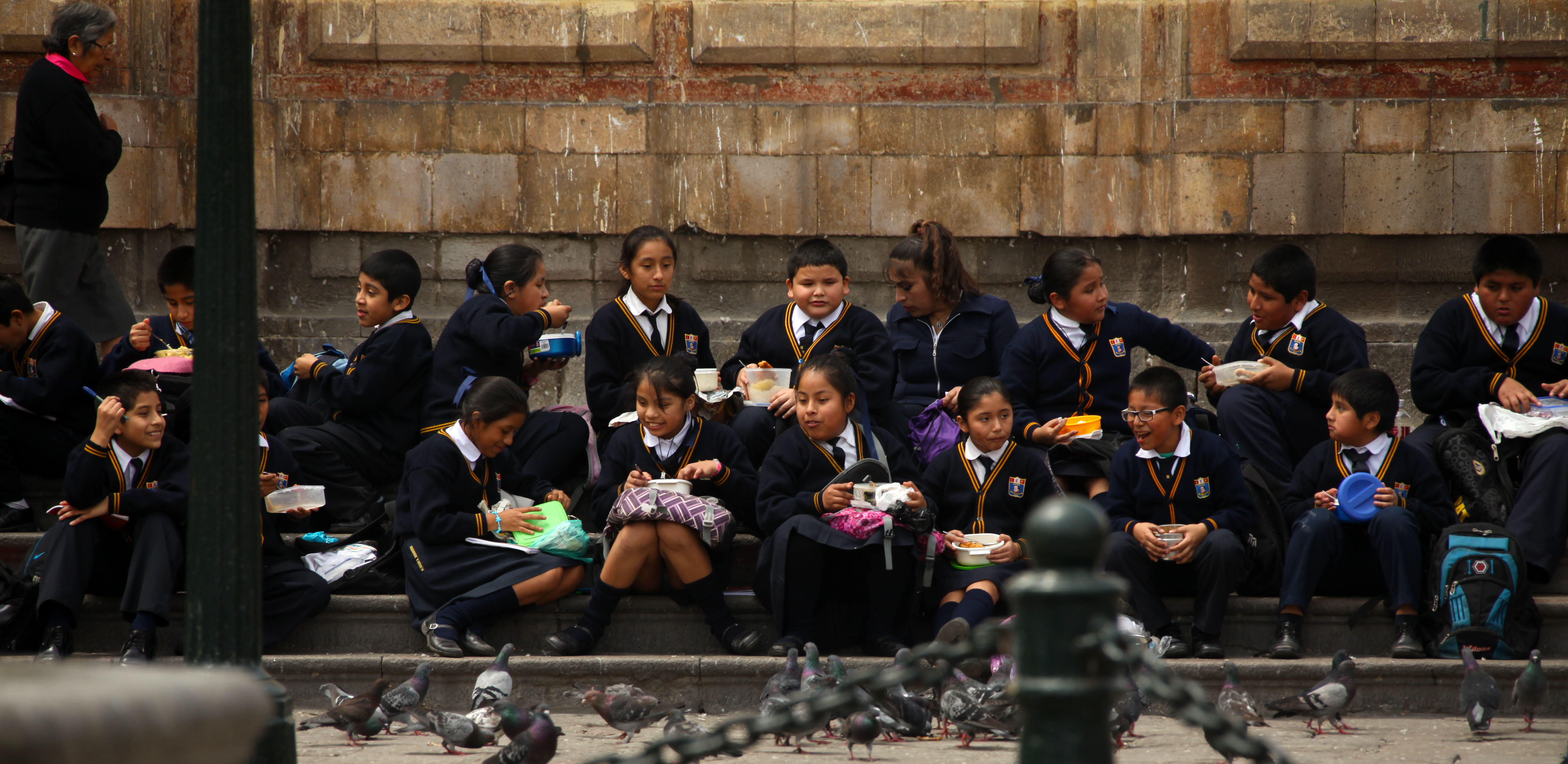Peruvian Field Trip lunch August 24, 2013 5616 × 2736 Faces of Lima Sack lunches and school uniforms for this class in Lima, Peru. A uniformed school group in Lima, Peru enjoy a snack on the steps of the Cathedral.