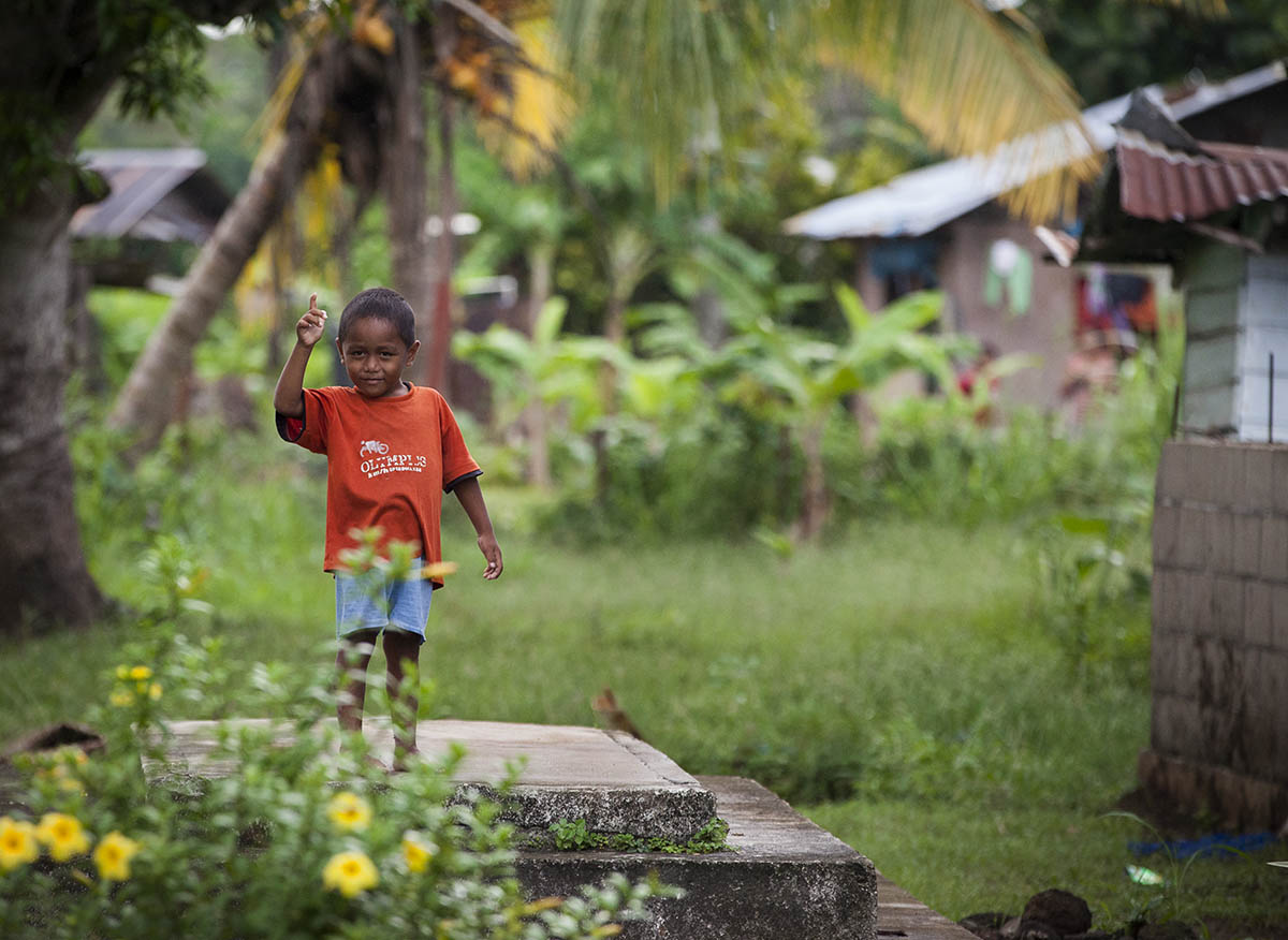 Talofa lava–a young boy waves in greeting.