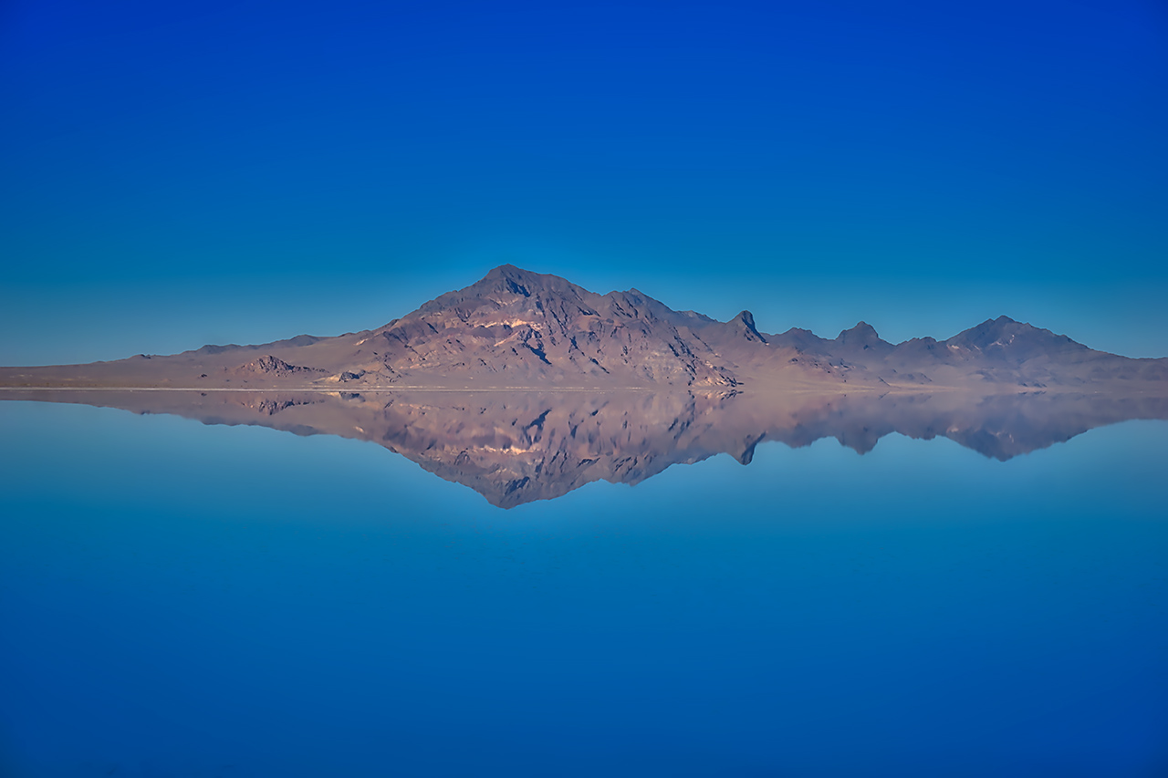 It can be difficult to determine where the earth ends and the sky begins in the perfect reflections of the Bonneville Salt Flats.