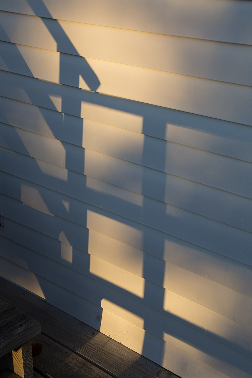 The setting sun creates interesting shapes and lines on the third floor staff residence building.