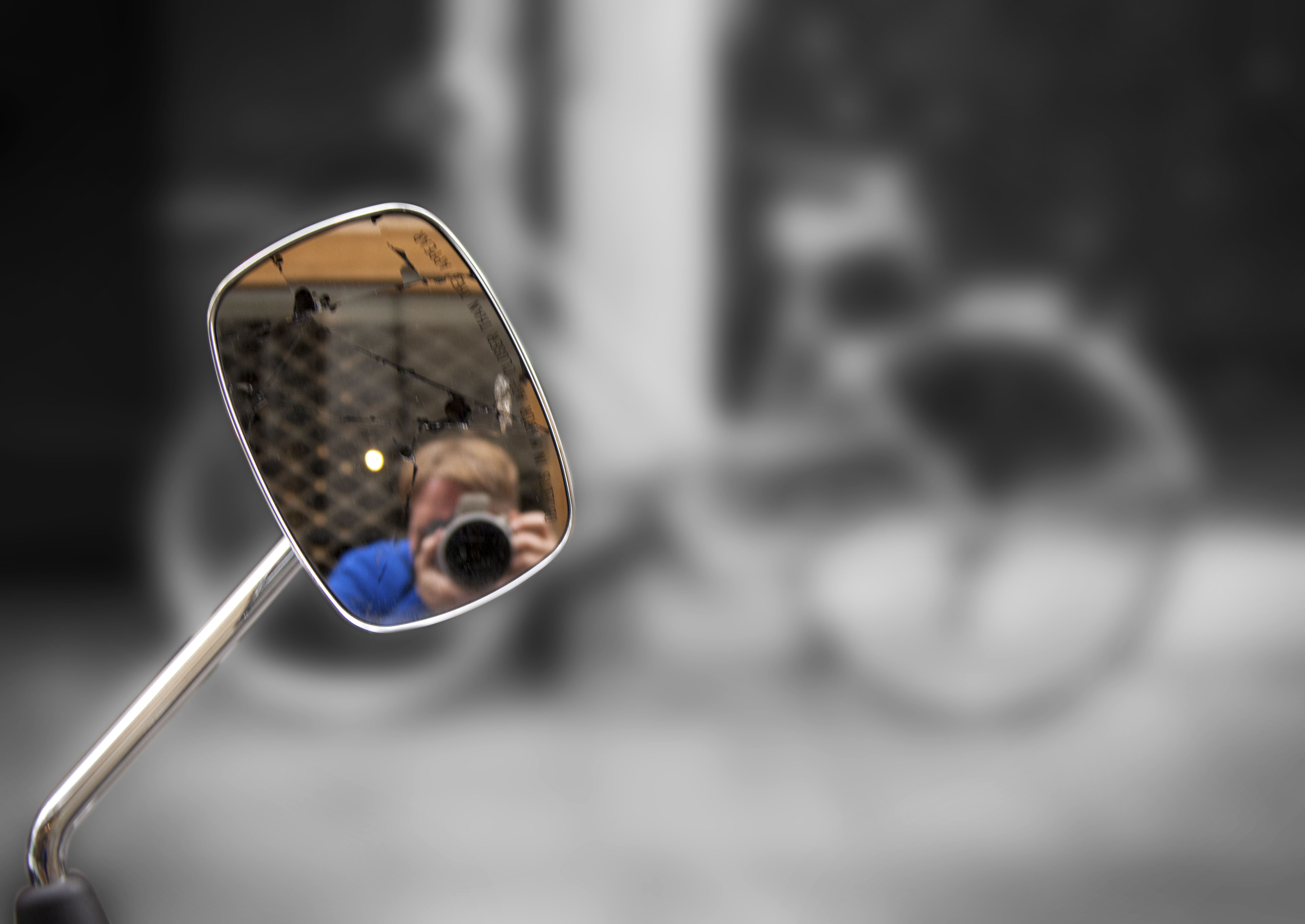 Self portrait October 6, 2013 4933 × 3493 Self portrait My reflection in the cracked mirror of a Vespa. My reflection in the cracked mirror of a Vespa.