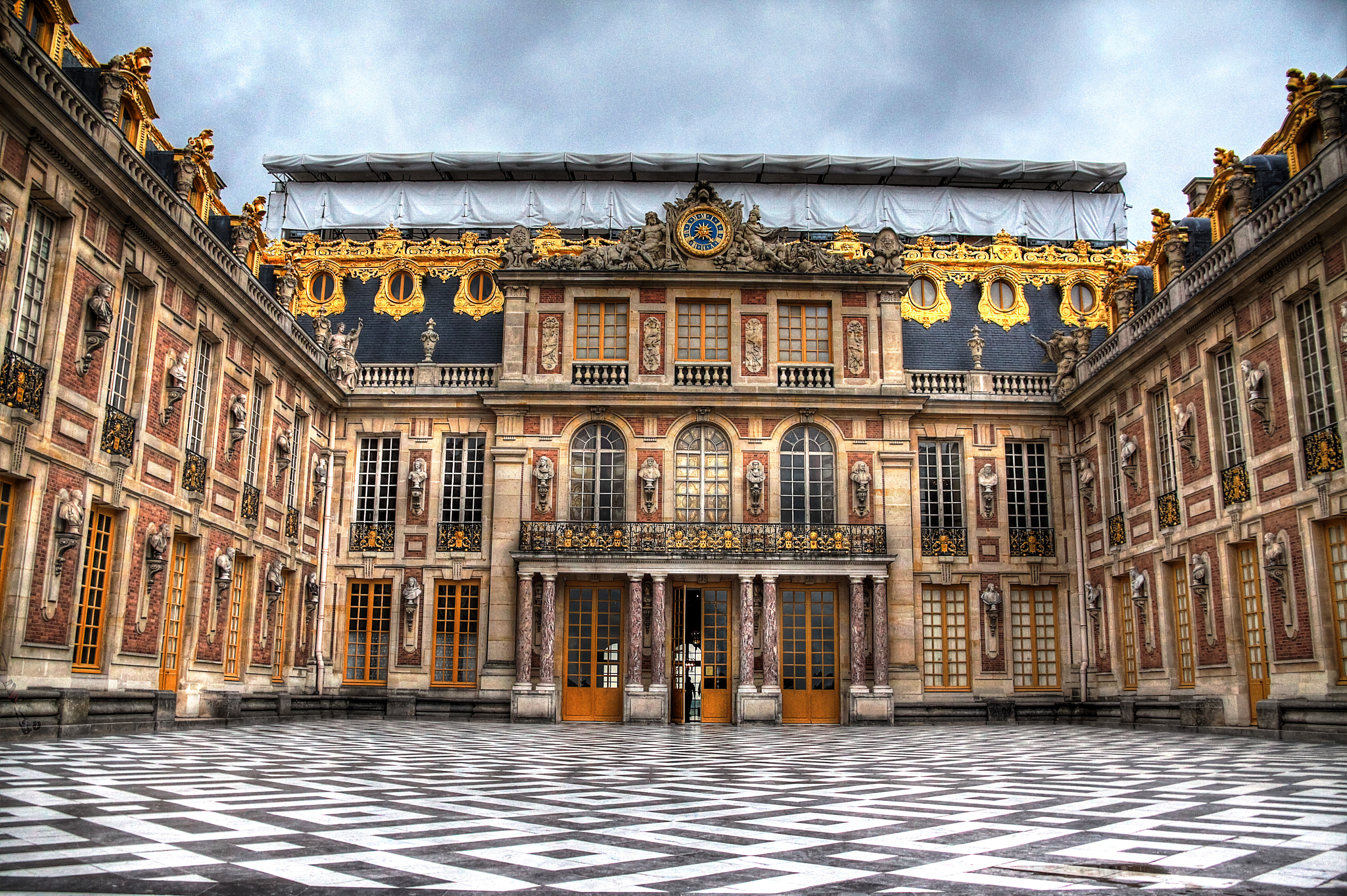 Marble courtyard at the heart of the Palace of Versailles, grants entrance to the King’s private chambers.