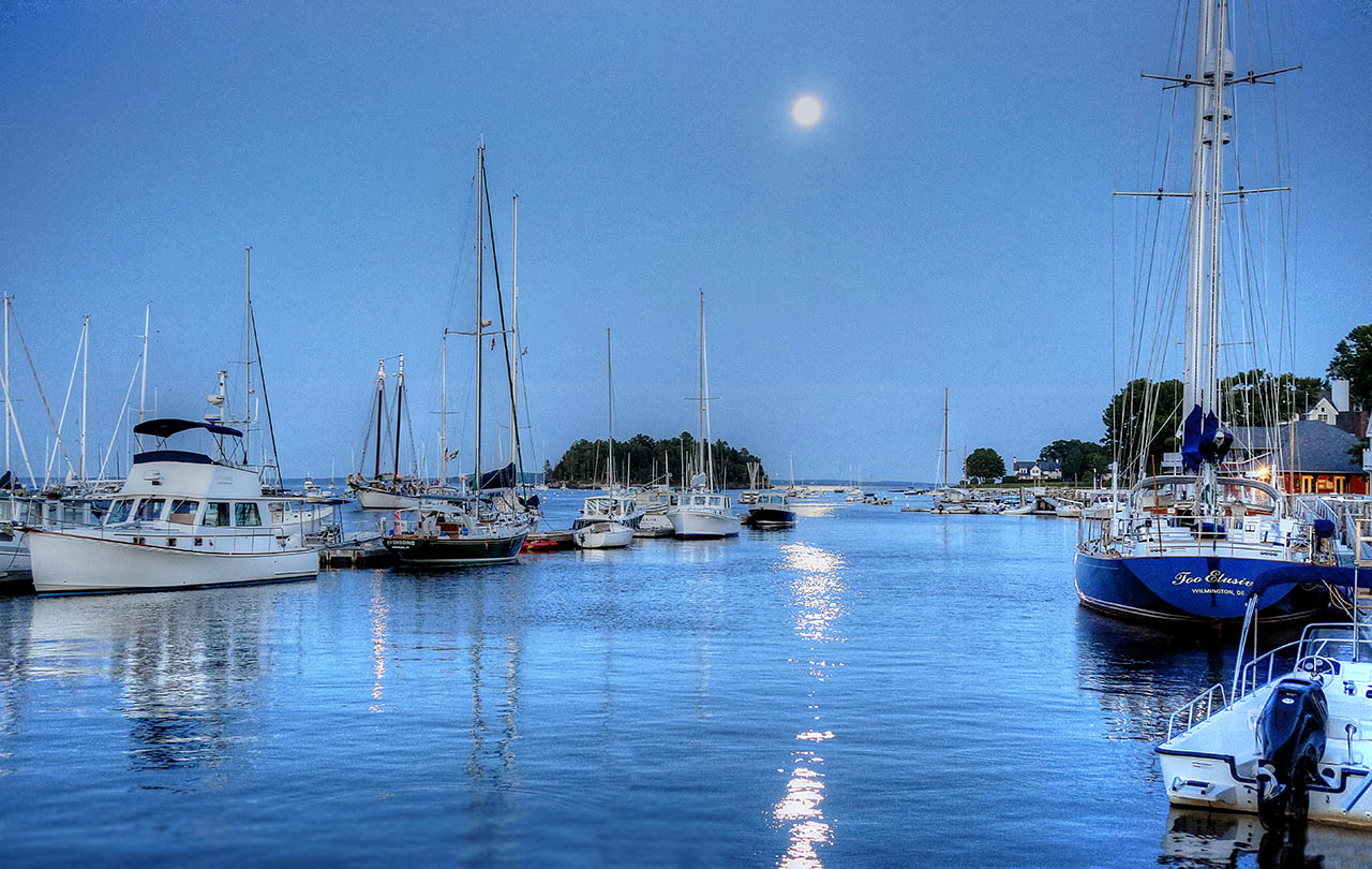 Moon on Camden Harbor July 26, 2014 1280 × 810 Moon on Camden Harbor From the balcony of a restaurant on the bay, my last night in Maine.